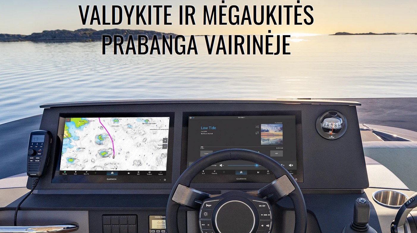 Valdykite jūrlapių braižytuvą balso komandomis per suderinamas ausines arba išmanųjį laikrodį „quatix®“.