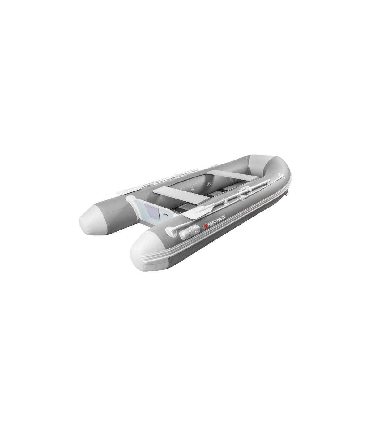 MAGNUS valtys pagamintos iš aukštos kokybės penkių sluoksnių PVC medžiagos, kuri yra itin atspari dėvėjimuisi, UV spinduliams ir mechaniniam pažeidimui. Konstrukcijoje naudojamos sustiprintos suvirintos siūlės bei daugiakamerė sistema, kurios dėka valtis pasižymi puikiu stabilumu ir saugumu.