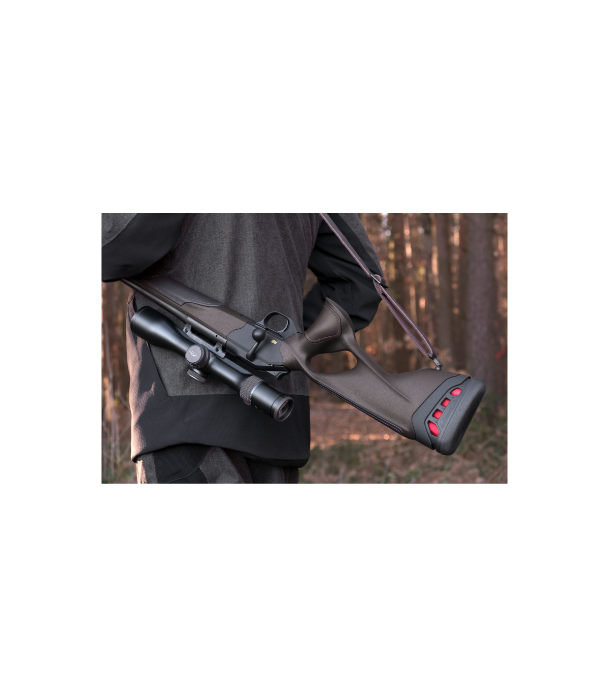 Ergonomiškai tobula nykščio anga, optimaliai prisitaiko prie individualių ir medžioklės reikalavimų.